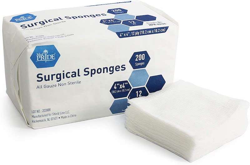 | This is the same pack of sponges that I use and it works super well. I like that the sponges aren't individually wrapped - less wrappers to deal with. They are inexpensive, the perfect size (when folded in half, twice) and don't stick to the wound. |