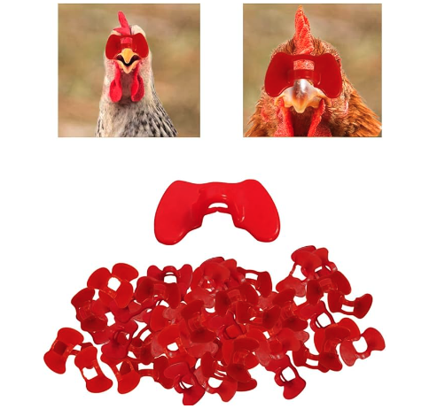 These prevent chickens from seeing what's directly in front of them, but they can still see from the side. Reduces flock picking and egg eating.ย Make sure to choose the right size for your flock! | |